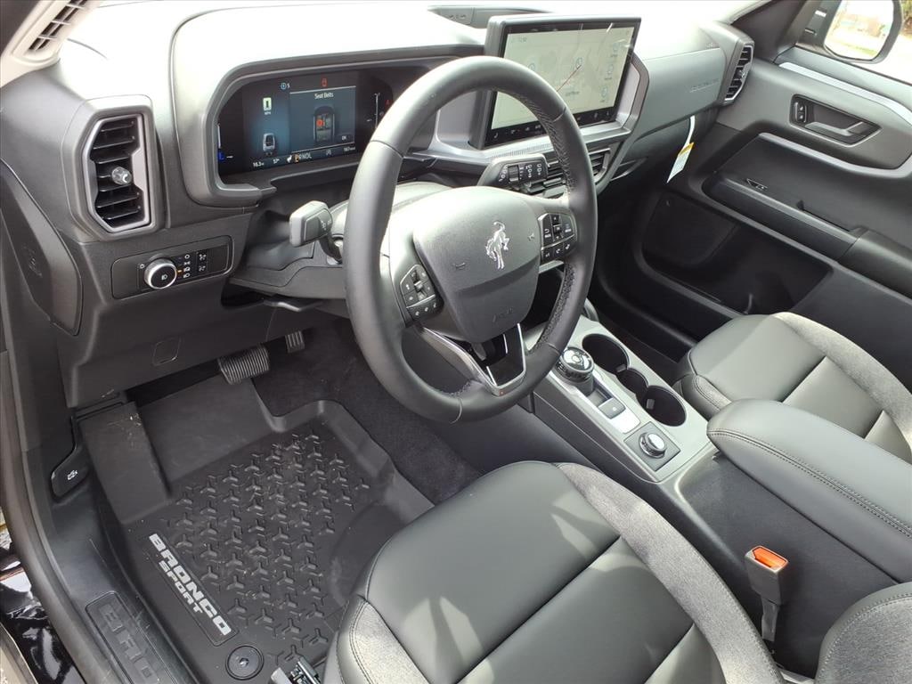 Black Appearance Package: Painted Shadow Black Roof; Cargo Mat; 17 Matte Black-Painted Aluminum Wheels; Front and Rear Floor Liners Without Carpet Mats; Liftgate with Black BRONCO SPORT Lettering; Carbon Black Grille with Black Painted BRONCO Lettering; Premium Trimmed Front Sport Contour Bucket Seats. Convenience Package: Premium Wrapped Steering Wheel; Liftgate with Black BRONCO SPORT Lettering; Front Driver/passenger Seat Back Map Pockets; Heated 8-Way Power Driver's Seat; LED Fog Lamps. Equipment Group 200A Standard Package: 8-Speed Automatic Transmission; 225/65R17 102H All-Season BSW Tires; AM/FM Stereo; 1.5L EcoBoost Engine. Cargo Management System (shelf/divider/table). Front and Rear Floor Liners Without Carpet Mats. Cargo Mat. **Equipment listed is based on original vehicle build and subject to change. Please confirm the accuracy of the included equipment by calling the dealer prior to purchase.**