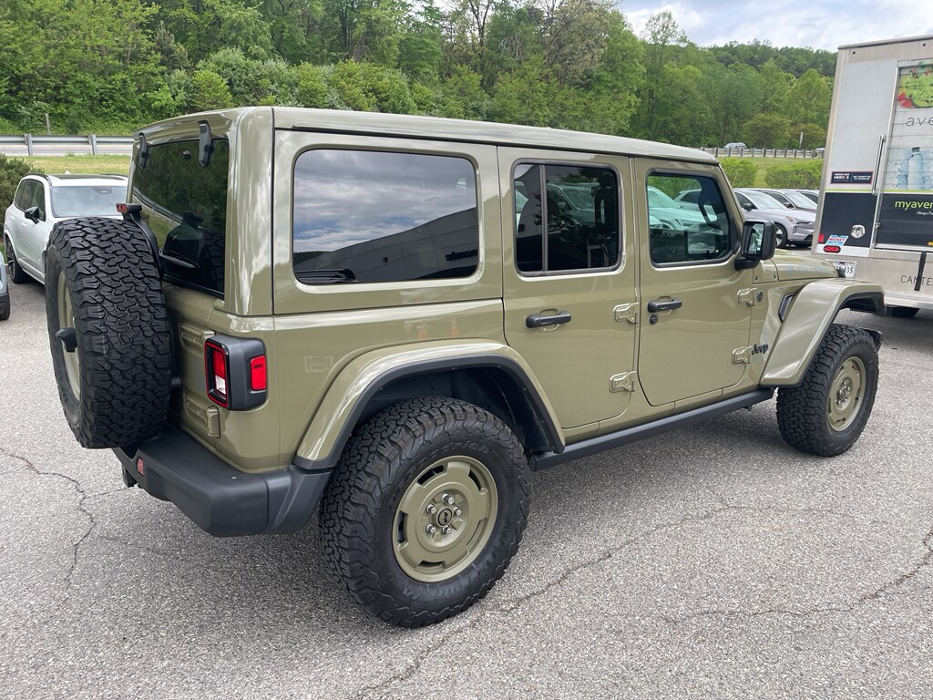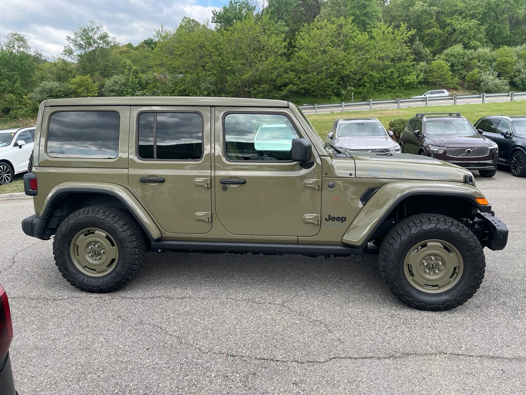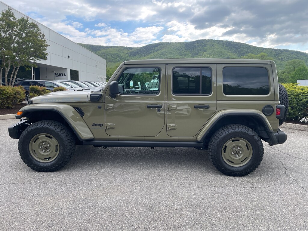 2025 Jeep Wrangler 4xe Willys '41 - low mileage and ready for adventure in Roanoke, VA. This rugged 4WD plug-in hybrid pairs a responsive 4-cylinder 2.0L PHEV powertrain with the iconic Jeep capability you trust. With only 3,258 miles, this Jeep Wrangler 4xe delivers the confidence of a CARFAX 1-Owner vehicle and a CARFAX Clean Report for added peace of mind. Trimmed in the Willys '41 styling, this model stands out with heritage-inspired accents, durable off-road ready features, and modern convenience. Inside, stay connected and entertained with Apple CarPlay and Android Auto integration, while Adaptive Cruise Control helps reduce driver fatigue on longer drives. The cabin balances utility and comfort, offering the versatile utility expected from a true Jeep. Whether navigating city streets or exploring backroads around Roanoke, VA, this Jeep Wrangler 4xe combines electrified performance with legendary trail capability. Low mileage means many miles of reliable driving ahead for its next owner. Financing and vehicle history details are available - schedule a test drive today to experience the blend of classic Wrangler style and modern hybrid technology. This Willys '41 4xe is an excellent choice for buyers seeking capability, modern tech, and a clean ownership history.